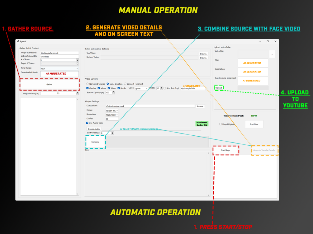 - End-to-End Automation – Finds clips, assembles videos, writes metadata, and uploads on autopilot.